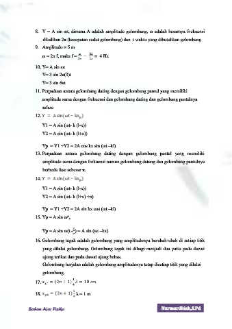 8. Y = A sin ωt, dimana A adalah amplitude gelombang, ω adalah besarnya frekuensi
