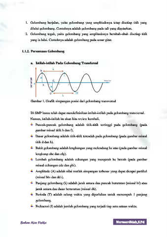 1. Gelombang berjalan, yaitu gelombang yang amplitudonya tetap disetiap titik yang