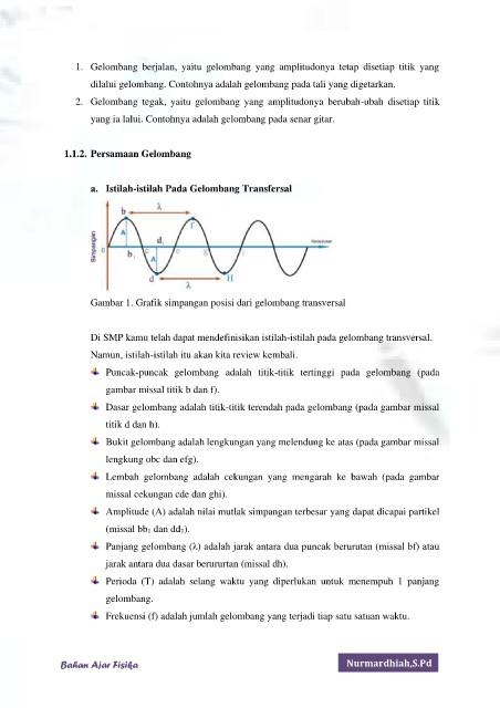 Di SMP kamu telah dapat mendefinisikan istilah-istilah pada gelombang transversal.