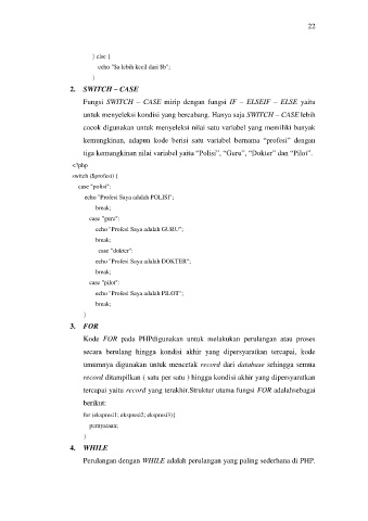 untuk menyeleksi kondisi yang bercabang. Hanya saja SWITCH – CASE lebih