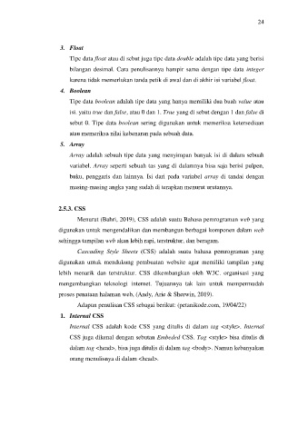 Menurut (Bahri, 2019), CSS adalah suatu Bahasa pemrograman web yang