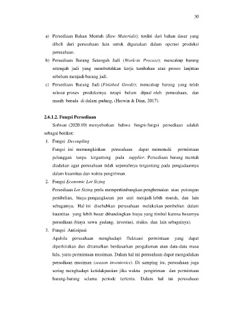 Sofwan (2020:10) menyebutkan bahwa fungsi-fungsi persediaan adalah