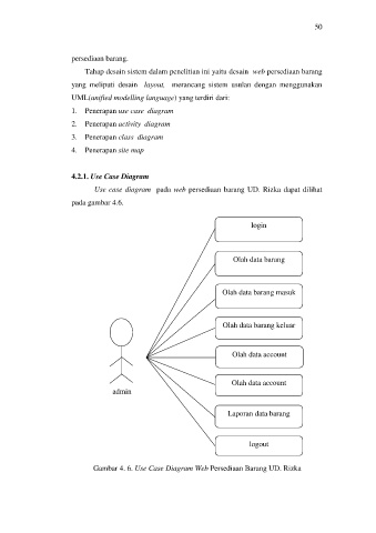Use case diagram pada web persediaan barang UD. Rizka dapat dilihat