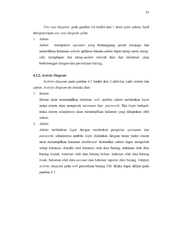 Use case diagram pada gambar 4.6 terdiri dari 1 aktor yaitu admin, hasil