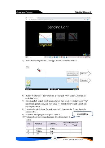 jika terjadi pembiasan, dan beri tanda (v) pada kolom “Tidak” jika tidak