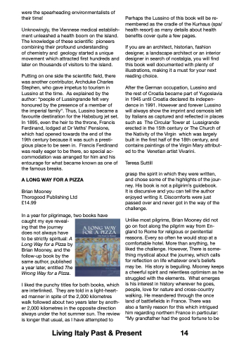 and the the follow-up book by the the same author published a a a a a a a a year later entitled The Wrong Way for a a a a a a Pizza I liked the punchy titles for both books which are are interlinked They are are told in in in in a a a a a light-heart- ed ed ed manner in in in in spite of the 2 000 kilometres walk followed about two years later by anoth- er er er er 2 000 kilometres in the the opposite direction always under the the hot summer sun The review is longer that usual as I have attempted to Perhaps the the the Lussino of of this book will be be re- membered as as the the the cradle of of the the the Kurhaus (spa/ health health resort) as as many details about health health benefits cover quite a a a a a a a few pages If you are an an an an architect architect historian fashion designer designer a a a a a a a a a a a a a landscape architect architect or or or an an an an interior designer designer in in fin search of of nostalgia you will find this book well documented with plenty of of illustrations making it it a a a a must for your next reading choice