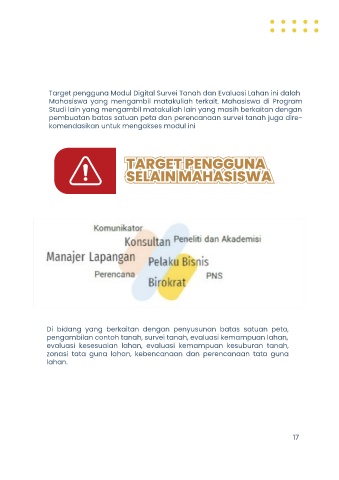 Target pengguna Modul Digital Survei Tanah dan Evaluasi Lahan ini dalah