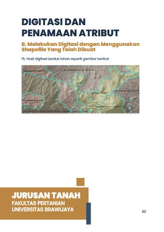 DIGITASI DAN PENAMAAN ATRIBUT B. Melakukan Digitasi dengan Menggunakan Shapefile Yang Telah Dibuat 15. Hasil digitasi bentuk lahan seperti gambar berikut JURUSAN TANAH FAKULTAS PERTANIAN UNIVERSITAS BRAWIJAYA 62