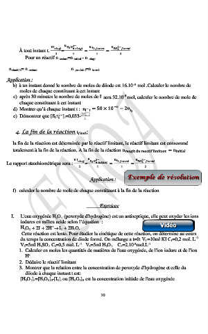 c) après 30 minutes le nombre de moles de I sera 32.10 mol, calculer le nombre de mole de