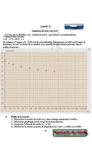 1. Déterminer le nombre de moles de I 2 dans mélange réactionnel à t=450 s.