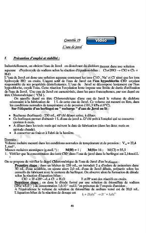 1. Vérifier que la concentration des ions ClO dans l’eau de javel dans le berlingot est 2,14mol.L -