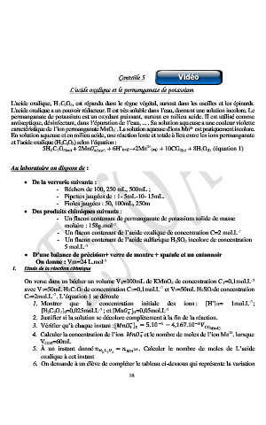 et l’acide oxalique (H 2C 2O 4) selon 1'équation :