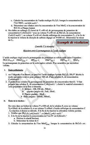 4. On réalise un mélange (2) formé de V 1 =30 mL de permanganate de potassium de