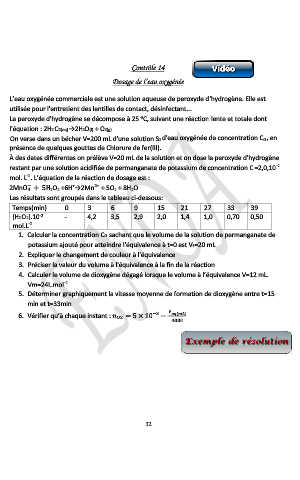 À des dates différentes on prélève V=20 mL de la solution et on dose le peroxyde d'hydrogène