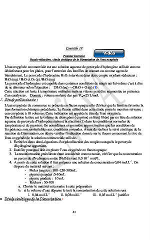 réaction de Dismutation, on désire vérifier l'indication donnée sur le flacon concernant le titre de