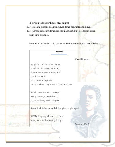 3. Memahami suasana dan menghayati tema, dan makna puisinya.