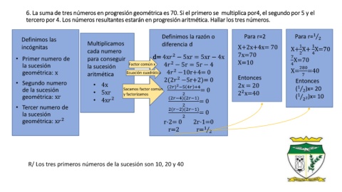 6. La suma de tres números en progresión geométrica es 70. Si el primero se multiplica por4, el segundo por 5 y el