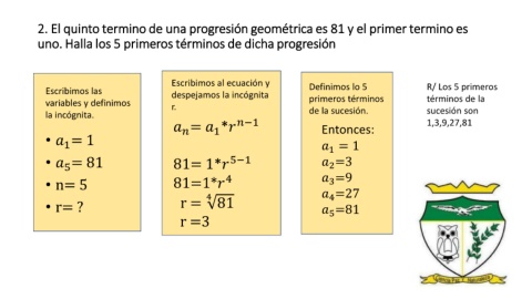 2. El quinto termino de una progresión geométrica es 81 y el primer termino es