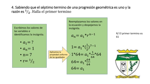 4. Sabiendo que el séptimo termino de una progresión geométrica es uno y la