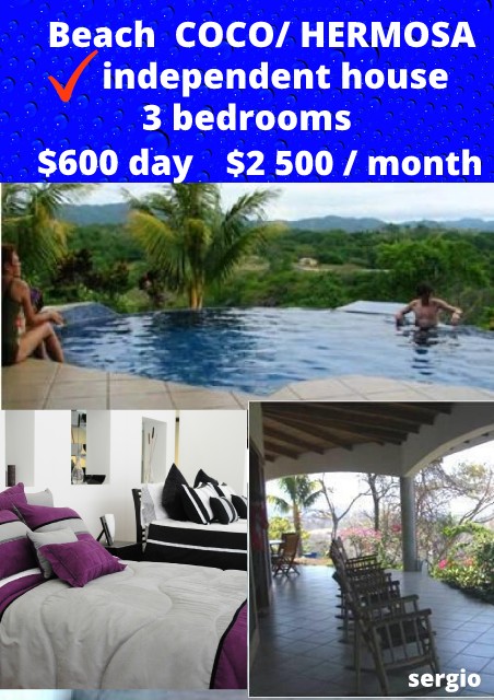 Beach COCO/ HERMOSA independent house 3 bedrooms $600 day $2 500 / month sergio mauric
