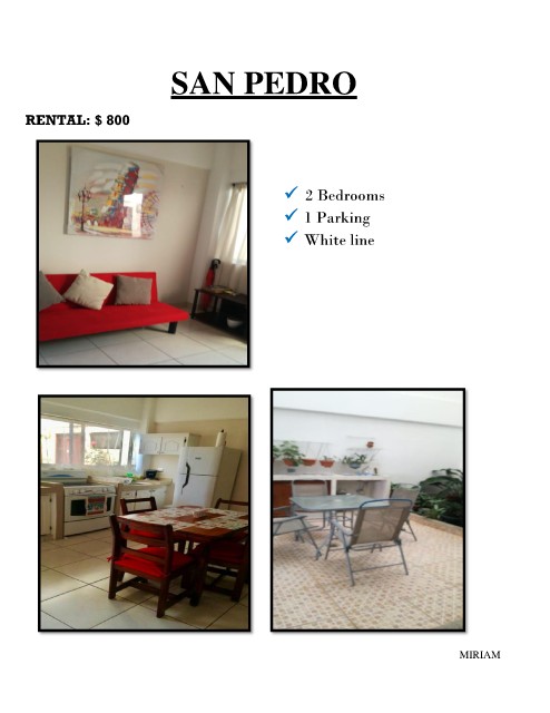 SAN PEDRO RENTAL: $ 800 ✓ 2 Bedrooms ✓ 1 Parking ✓ White line MIRIAM