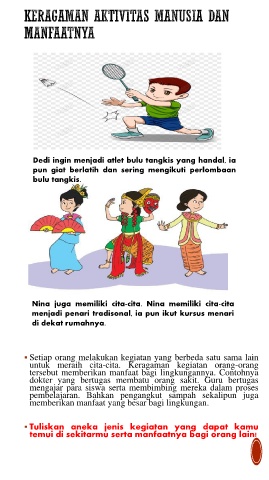 untuk meraih cita-cita. Keragaman kegiatan orang-orang