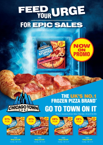 NOWONPROMOGO TO TOWN ON IT*Circana | Convenience GB (incl. Mults) | Value Sales | 52 w/e 22 Feb 2025THE UK%u2019S NO.1FROZEN PIZZA BRAND*FEEDYOURURGEFOR EPIC SALES2782Only %u00a323.9910x320g RRP: %u00a33.5031%POR2562Only %u00a326.9910x480g RRP: %u00a33.7528%POR2563Only %u00a326.9910x490g RRP: %u00a33.7528%POR2781Only %u00a323.9910x305g RRP: %u00a33.5031%POR