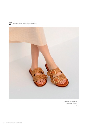 17 airandgracelondon.comTALIA SANDALS:Natural Raffia%u00a3129Woven from soft, natural raffia.