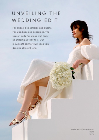 airandgracelondon.com 30STYLE NAME:COLOUROther Colours Available%u00a3000UNVEILING THEWEDDING EDITFor brides, bridesmaids and guests. For weddings and occasions. The season calls for shoes that look as amazing as they feel. Our cloud soft comfort will keep you dancing all night long.DANCING QUEEN HEELS:Gold%u00a3179
