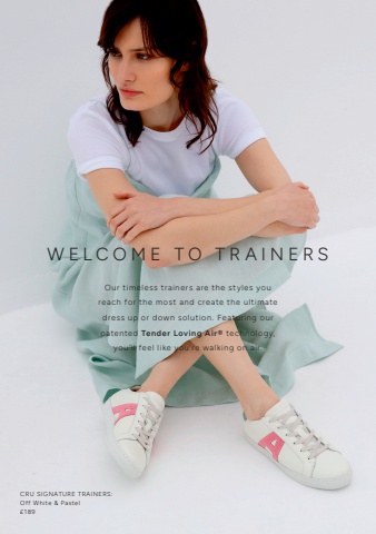 3 airandgracelondon.comOur timeless trainers are the styles you reach for the most and create the ultimate dress up or down solution. Featuring our patented Tender Loving Air%u00ae technology, you'll feel like you're walking on air.CRU SIGNATURE TRAINERS:Off White & Pastel%u00a3189WELCOME TO TRAINERS