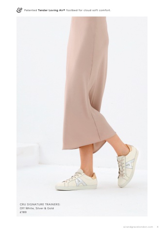 airandgracelondon.com 4CRU SIGNATURE TRAINERS:Off White, Silver & Gold%u00a3189Patented Tender Loving Air%u00ae footbed for cloud soft comfort.