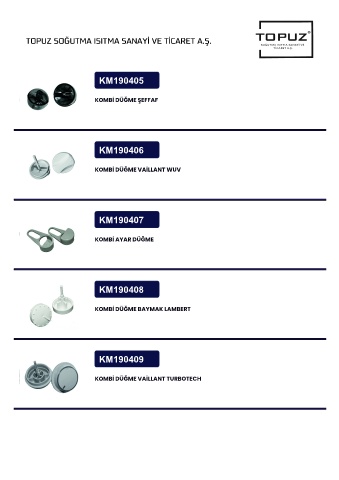 TOPUZ SOĞUTMA ISITMA SANAYİ VE TİCARET A.Ş. KM190405 KOMBİ DÜĞME ŞEFFAF KM190406 KOMBİ DÜĞME VAİLLANT WUV KM190407 KOMBİ AYAR DÜĞME KM190408 KOMBİ DÜĞME BAYMAK LAMBERT KM190409 KOMBİ DÜĞME VAİLLANT TURBOTECH