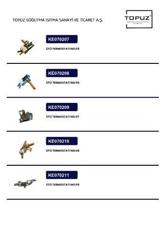 TOPUZ SOĞUTMA ISITMA SANAYİ VE TİCARET A.Ş. KE070207 ÜTÜ TERMOSTATI NO:05 KE070208 ÜTÜ TERMOSTATI NO:06 KE070209 ÜTÜ TERMOSTATI NO:07 KE070210 ÜTÜ TERMOSTATI NO:08 KE070211 ÜTÜ TERMOSTATI NO:09