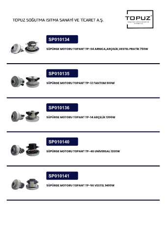 SÜPÜRGE MOTORU TOPANT TP-46 UNİVERSAL 1200W