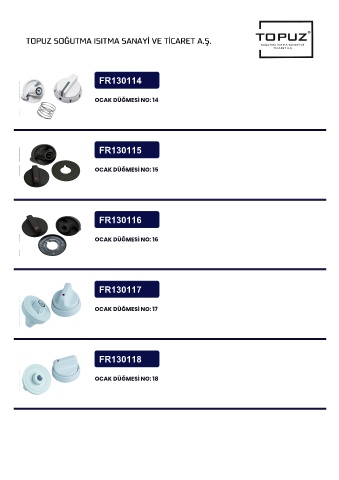 TOPUZ SOĞUTMA ISITMA SANAYİ VE TİCARET A.Ş. FR130114 OCAK DÜĞMESİ NO: 14 FR130115 OCAK DÜĞMESİ NO: 15 FR130116 OCAK DÜĞMESİ NO: 16 FR130117 OCAK DÜĞMESİ NO: 17 FR130118 OCAK DÜĞMESİ NO: 18