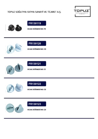 TOPUZ SOĞUTMA ISITMA SANAYİ VE TİCARET A.Ş. FR130119 OCAK DÜĞMESİ NO: 19 FR130120 OCAK DÜĞMESİ NO: 20 FR130121 OCAK DÜĞMESİ NO: 21 FR130122 OCAK DÜĞMESİ NO: 22 FR130123 OCAK DÜĞMESİ NO: 23