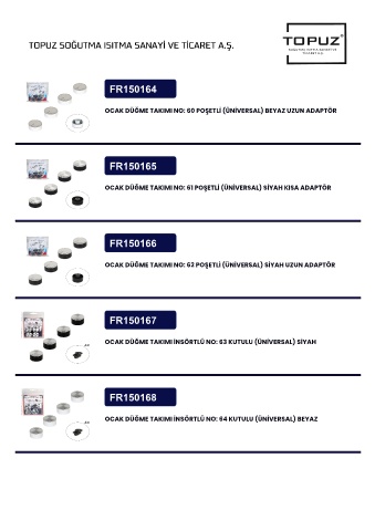 OCAK DÜĞME TAKIMI NO: 60 POŞETLİ (ÜNİVERSAL) BEYAZ UZUN ADAPTÖR