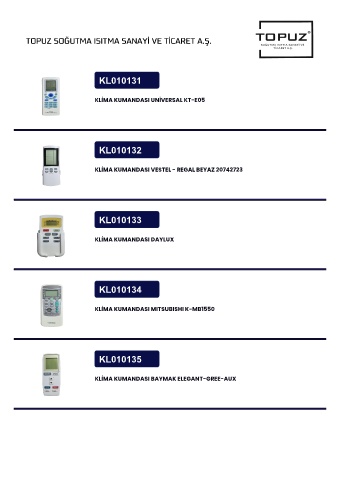 KLİMA KUMANDASI UNİVERSAL KT-E05