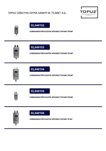 KONDANSATÖR PLASTİK GÖVDELİ TOPANT 05 MF