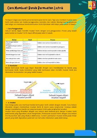 dari ketiga cara membuat benda bermuatan listrik dijelaskan lebih lanjut pada uraian di bawah.