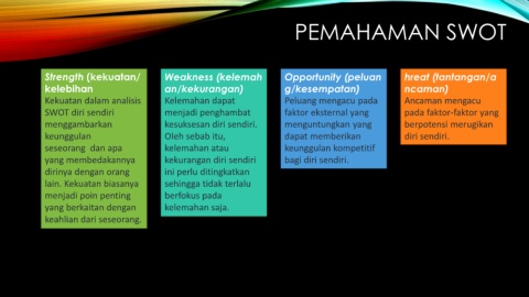 Kekuatan dalam analisis Kelemahan dapat Peluang mengacu pada Ancaman mengacu