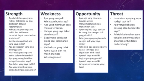• Apa kelebihan yang saya • Apa yang menjadi • Apa saja yang bisa saya • Hambatan apa yang saya