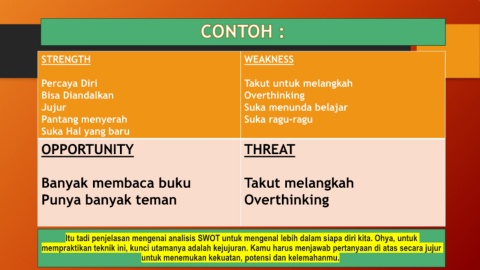 Itu tadi penjelasan mengenai analisis SWOT untuk mengenal lebih dalam siapa diri kita. Ohya, untuk