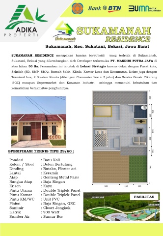 Sukatani, Bekasi yang dikembangkan oleh Developer terkemuka PT. MANDIRI PUTRA JAYA di