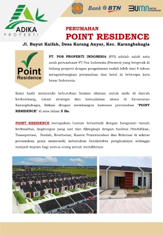 Karangbahagia, Bekasi dengan membangun kawasan perumahan “POINT