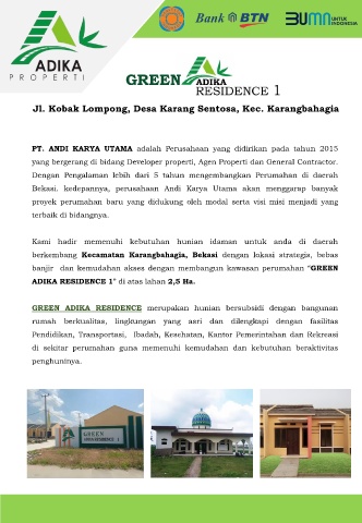 ADIKA RESIDENCE 1” di atas lahan 2,5 Ha.