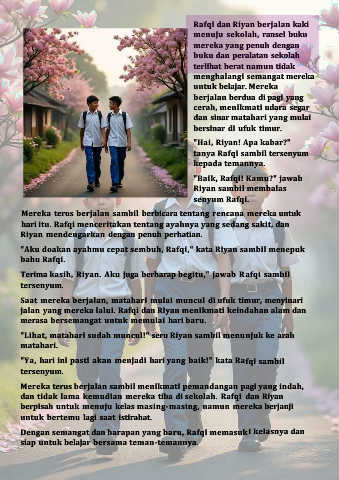 Dengan semangat dan harapan yang baru, Rafqi memasuki kelasnya dan
