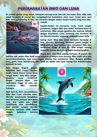 Riko sedang berenang di laut, dia bertemu dengan seekor lumba-lumba yang lucu dan