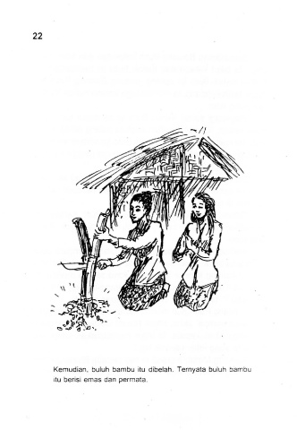 22 Kemudian, buluh bambu itu dibelah . Ternyata buluh bambu itu berisi emas dan permata.