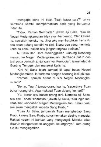 "Ya, benar aku bukan· orang sini. Namaku Aji Saka,
